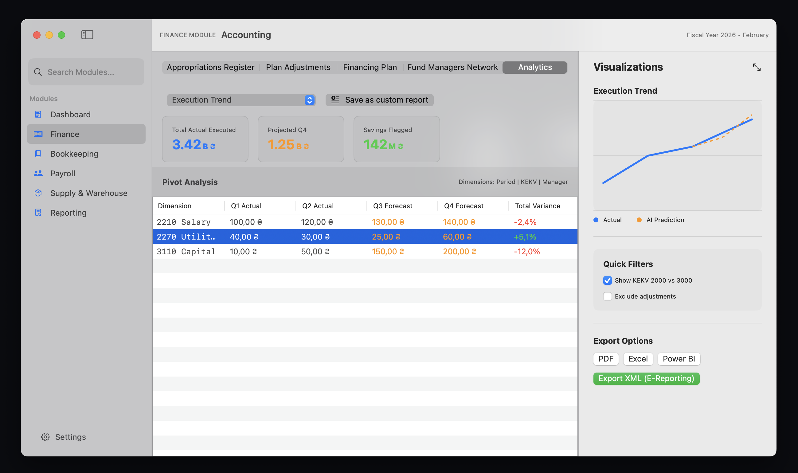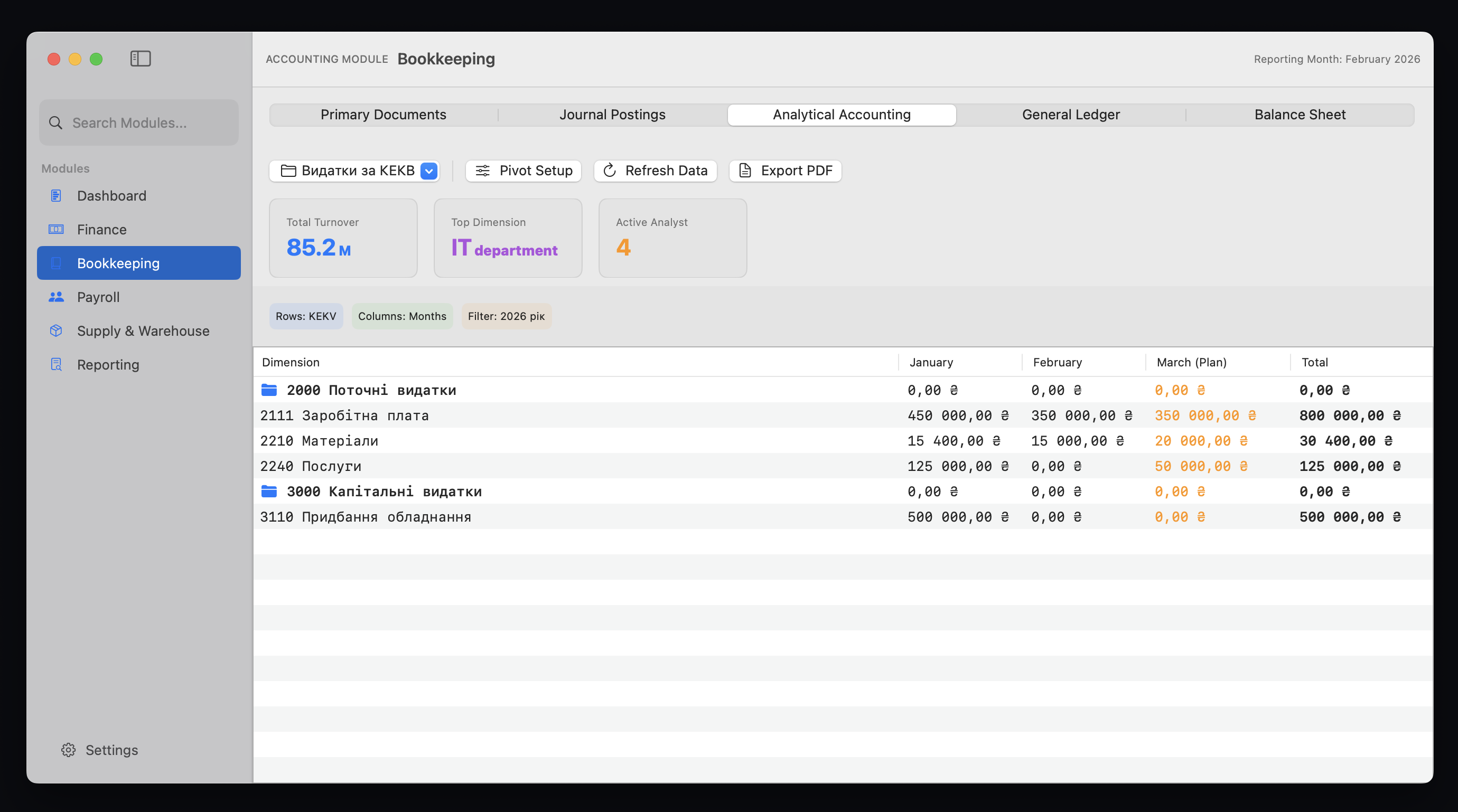 - Багатовимірна аналітика та довільні управлінські звіти в реальному часі